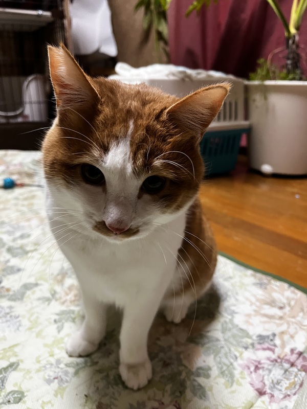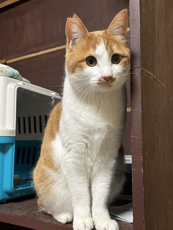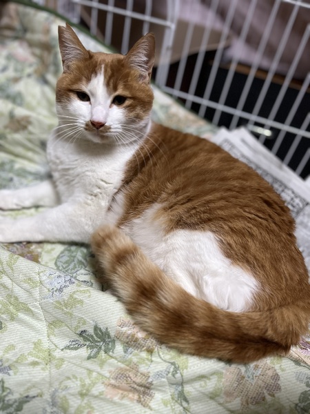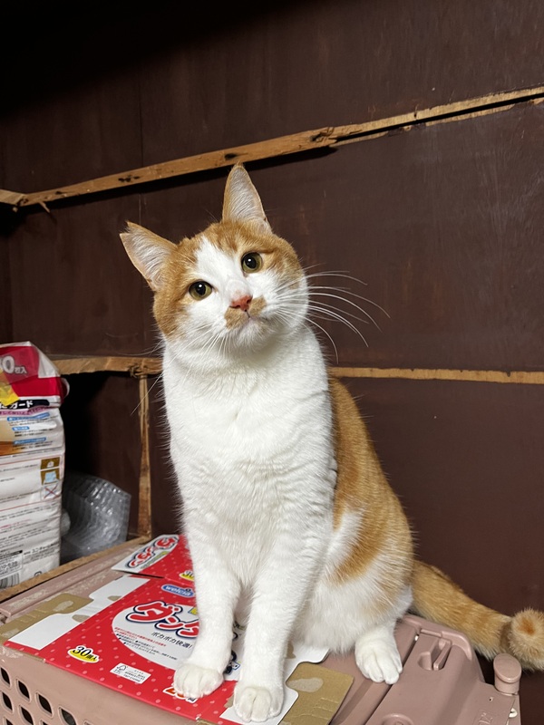 | 特徴(性格など) | 茶白 体格大きめの6キロだけど、心は子猫です。 | ||