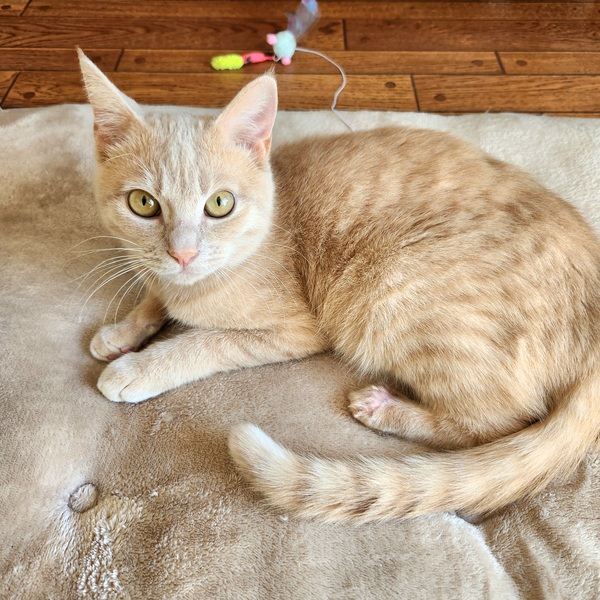 | 特徴(性格など) | クリーム茶トラの男の子 少し怖がりな所もありますがお膝に乗るのが大好きな甘えん坊さんです |