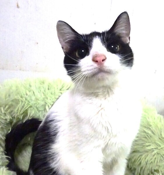 | 特徴(性格など) | 仮名: 由香ちゃん、メス 毛色: 白黒八割れ、尻尾長い 性格: 少し臆病なのか人見知りなのか、捕まえようと手を出すと逃げる傾向があります。 とは言え、すぐに捕まるのですが、抱っこするまでは緊張しています。 抱っこするとスリスリしたり喉を鳴らしたりしますので、ちょっとだけ怖がりかと思います。 初めての人でも抱っこ出来ると思いますが、自分から進んでくるわけではありません。 外では他猫と一緒に居ましたからうまく付き合えるのではないかと思います。 騒いだり、大声でないたりはしない大人しい子と思います。由香ちゃんのペースに合わせて、家猫修業から始めて育てて下さるご家庭を希望します。 お届けは千葉県内で千葉市幕張から車で1時間位でお願いします。 |