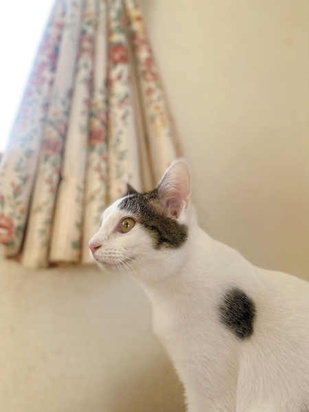 | 特徴(性格など) | 性格 おてんばで好奇心旺盛。手先が器用 (←保護主さん情報) 初めましての私でも撫でて、抱っこもできました。 懐っこい子でよくスリスリしてきます。人が好きな子。 特徴 前髪のような柄 体の模様 |