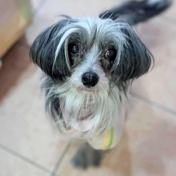 | 特徴(性格など) | 【仮名】 ミルフィーユ 【犬種】 チャイニーズクレステッドドッグ(ヘアリーへアレス) 【カラー】 ホワイト&グレー 【体重】 4.1キロ 【性格】 明るく元気なチャイクレらしい子ですが、昼寝や日向ぼっこが大好きな面もあります。 チャイクレにしてはおっとりのんびりな印象です。 穏やかな子なので、他のわんことも問題なく過ごしています。 気の合うわんことは、ワンプロして遊びます。 【ご飯】 ドライフードに缶詰めや煮野菜などをトッピングしています。 食欲旺盛でなんでもよく食べます。 【お散歩】 後ろから来るクルマや歩行者に立ち止まりますが、上手に公道を歩けます。 【お留守番】 フリーでしています。 【トイレ】 練習中ですが、シートでの成功率が高いです。 環境が変わると最初から練習になるかもしれません。 【その他】 現在、特に治療中の疾患はありません。元気な子です。 |