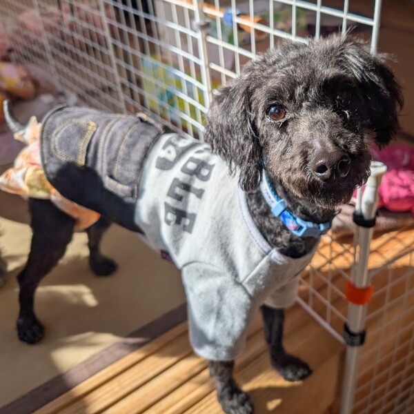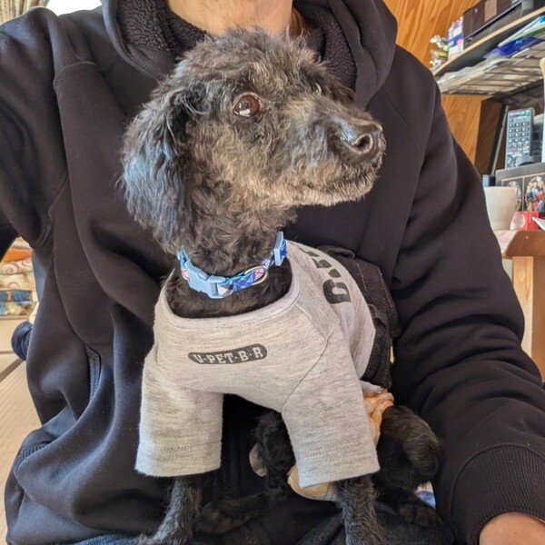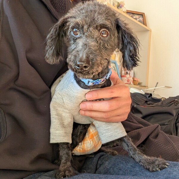 | 特徴(性格など) | 【仮名】 アルケス 【犬種】 トイプードル 【カラー】 ブラック 【体重】 3.0キロ 【性格】 明るく人懐っこくて、お膝の上が大好きな甘えん坊です。 人のそばにいるのが大好きで、いかにもプードルというタイプの子です。 穏やかなので、他のわんことも上手に過ごせます。 【ご飯】 油分が多いご飯は合わないようなので、消化器サポートと通常のドライをミックスしたフードをメインに、煮野菜や白身魚などをトッピングしています。 食欲旺盛でなんでもよく食べます。 痩せているのでデブエットしています。 【お散歩】 上手に歩けます。 【お留守番】 フリーでしています。 【トイレ】 練習中ですが、少しずつシートを認識していきているようです。 【その他】 現在、特に治療中の疾患はありません。元気な子です。 |