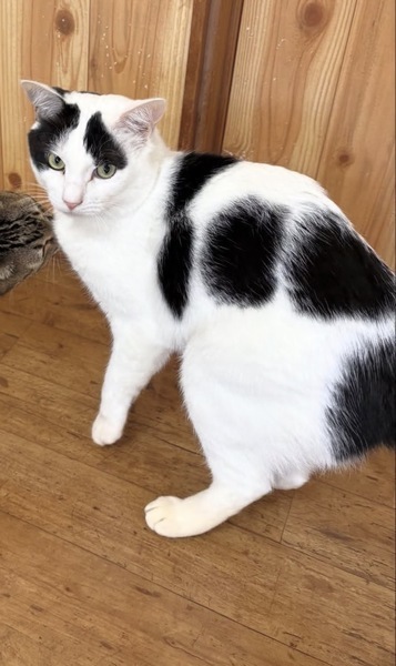 | 特徴(性格など) | 毛色 白黒 去勢手術済み エイズ•白血病 どちらも陰性 ノミダニ駆虫済み ワクチン接種済み 人慣れバッチリ。 おっとり穏やかな性格。 甘えん坊で撫でてもらうことが好き。 猫にも犬にも優しく仲良くできます。 |