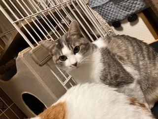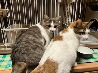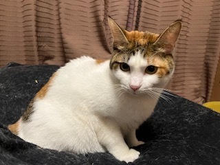 | 特徴(性格など) | ①三毛(にこ)生後8〜9ヶ月 メス まだ若いので色んなことに興味津々です。臆病な性格ですが、慣れると膝にも乗ってきて甘えます。 ②サバ白(ななこ:三毛の母猫)推定1~2歳 ※にこの母猫 とても慎重ですが、慣れるとご飯につられてすぐにやってきます。 現在は2匹とも、私だけは抱っこ出来るまでになりましたが、他の家族にはまだまだ慣れていません。 以下の項目は全て2匹共の状況す。 健康状態は良好。食欲旺盛。 ノミ・ダニ駆除済み。 避妊手術済み。エイズ及び白血病共に陰性。 現在少し便秘気味。 |
