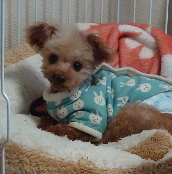 | 特徴(性格など) | ティカッププードルのココアくんです。 1.2キロです。 被毛の色は、レッドです。 7、8歳くらいです。 とってもかわいいお顔をしています 犬も人も大好き!! 「遊んでくださいな」と、チョンチョンしてきたり楽しそうに弾んで元気いっぱいです!! 先輩犬のベッドに乱入、くっついて寝ちゃいます^^ 食欲旺盛 とってもキュートな男の子です♪ 可愛い家族になれると思います^^ ※ドライフードの超小粒を食べています。 |