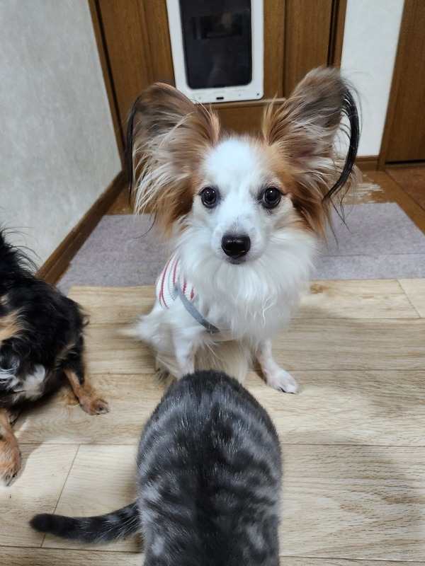 | 特徴(性格など) | 名前:リンリンちゃん (リンもしくはリンリンと呼んでます。) 年齢:推定4~5歳ぐらい 性別:メス 体重:3.9キロ (痩せ気味) ベスト体重は4キロ半ぐらい。 避妊手術済み マイクロチップ挿入と登録済み 歯科処置済み 心音( 異常なし ) 検便( - ) 耳ダニ( - ) 血液検査済み(ほぼ基準値で異常なし ) フィラリア検査:陰性 5種混合ワクチン 1回済み(2025年9月) レプトスピラ4種1回接種済み(2025年11月) 狂犬病予防接種済み(2025年12月) ノミダニ駆虫薬投薬済み 後脚の狼爪を左右ともに切除済み ●性格や特徴● 受け入れ当初から極度の怖がりさんなリンリン。 室内でもちょっとした物音などでパニックになって逃げ回る事も多く、 人慣れするまでかなり時間のかかるタイプの子です。 攻撃性はありません。 食欲旺盛で食べることは大好きです♪ おやつの時にお座りは出来るようになりました。 お散歩は好きなようでお家の中に居てる時より表情が明るくなることが多いです。 知らない道でもリードで誘導してあげると、固まらずに歩く事が出来ますが、 テンション上がったり、大きな物音などで突然の引っ張りやパニックになることがある為、 脱走要注意な子です。 就寝時やお留守番の時もリビングフリーで過ごしています。 他の犬猫とも相性が合えば、問題なく生活出来る子です。 トイレトレーニング中でまだ失敗も時々あるので、 気長に向き合って教えてあげて下さい。 お外でも排泄することは出来ます。 |