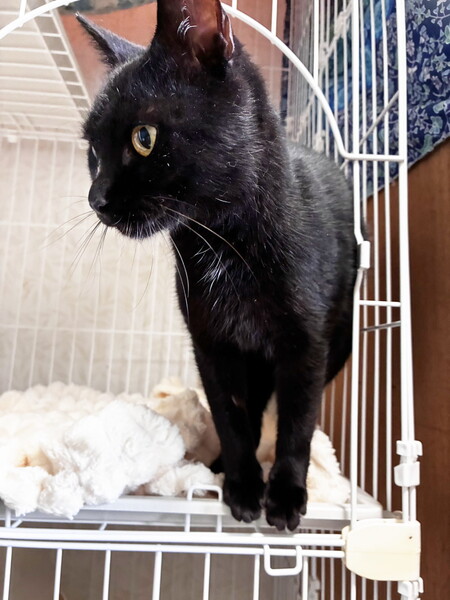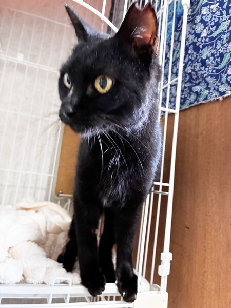 | 里親募集する理由 | 自宅の庭に来る猫をTNRしています。 小さめの黒猫が庭をウロウロする様になり、TNRの為に保護し、 2/14に避妊手術済みです。 リターンするには、あまりにも人慣れしすぎており、ゴロゴロと甘えます。 出来れば里親さんを探したあげたいと思い、リターンせずに保護しています。 猫を置いていく場所が限られており、この子も1週間ほどしか置いてあげられない為、 その間に里親さんが見付かれば!!と、思い募集に至りました |