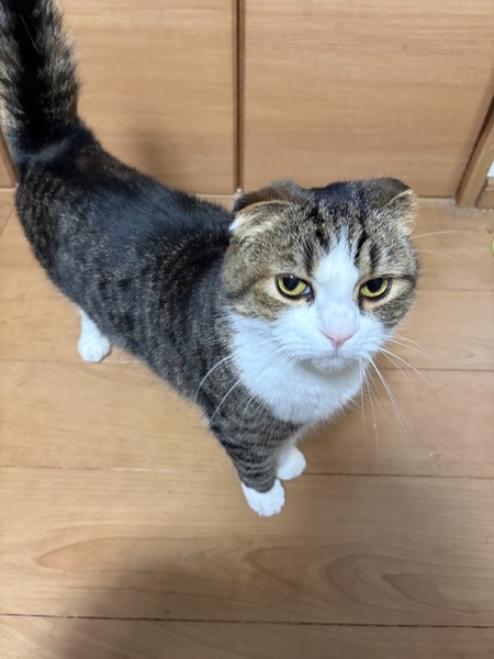 | 特徴(性格など) | 色、シルバータビー。 性格、少しビビりです。攻撃はしません。甘えたりもします。 食欲旺盛です。 |