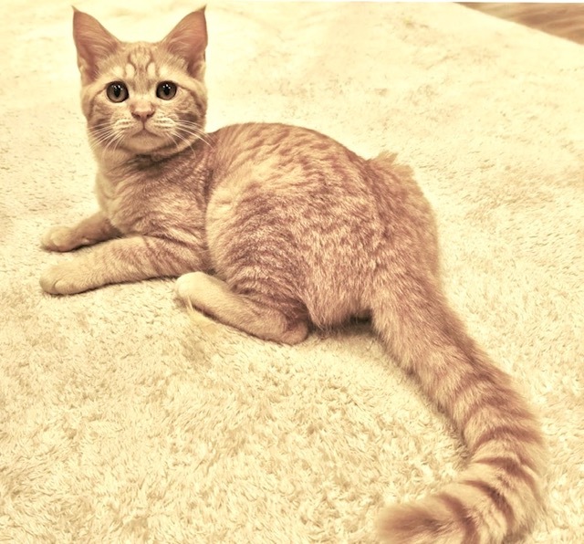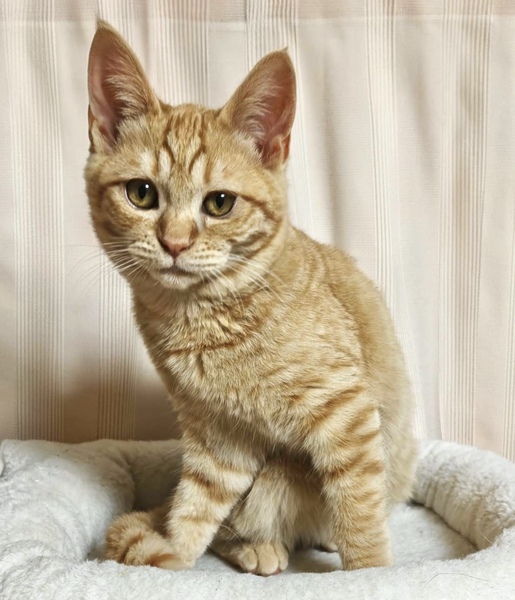 | 特徴(性格など) | 【仮名】こはくくん 【性格】ヘーゼル色の瞳のこはくくん☆ ピンク色のかわいいお鼻と肉球がチャームポイントです。 甘えん坊でストレートな愛情表現。 構ってほしいときは、全力でスリスリしてアピールします。 寝る時も抱きついて寝る超絶甘えん坊。 茶トラ男子特有の「永遠の甘えん坊将軍」を堪能できます。 クールなお姉さんのあめちゃんと元気な僕。 足して二倍の幸せをお届けします! ※1ピキ譲渡不可 |