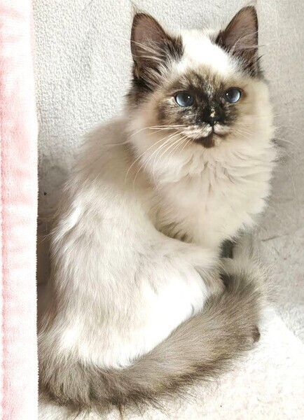 | 特徴(性格など) | 【仮名】あめちゃん 【性格】澄んだ深いブルーの瞳のあめちゃん☆ お顔や耳にあるおしゃれな焦げ茶色の ポイントカラーがチャームポイントです! シャムミックスの子は特有の賢さと愛情深さ、 そして季節や成長とともに変化する毛色がとても魅力的です。 普段はシャイですが撫でてもらうとゴロゴロ&クネクネ。 永遠にナデナデ出来ます! 遊びも大好きでおもちゃを見ると走って来て、 夜は弟のこはくくんと走り回っています。 ※1ピキ譲渡不可 |