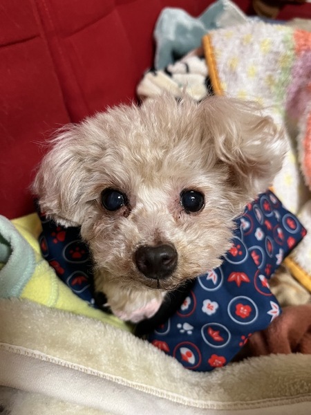 | 特徴(性格など) | 名前:ルーチェ(女の子) 犬種:トイプードル 年齢:推定5歳 体重:1.9kg 性格:穏やかでおとなしい甘えん坊 体調:耳血腫跡あり。臍ヘルニア、鼠蹊ヘルニア(軽度)あり。乳腺腫瘍摘出済み 全て生活には全く支障ありません。 トイレ:成功率は上がってきていますが、練習中です。散歩中でもします。 留守番:ゲージの中でおとなしく過ごせれます。 散歩:少し自由気ままに歩いたり止まったりします。抱っこをせがむ時もあり、まだ練習が必要です。 穏やかで大人しく優しい子です。 先住が吠えても同調もせず吠えることは滅多にありません。 小さくて可愛いルーチェにご縁がありますように |