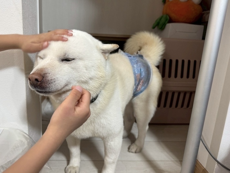 | 特徴(性格など) | おだやかむっちり系男子こはく 白柴6歳男の子です。12.8キロ。 おだやかな性格です。 まんまるな顔、豊満なボディ、多めな毛量、短めの足、肉厚なお耳すべてがチャームポイントです! ただしおもちゃで遊ぶ時は激しめで、そのギャップがたまりません。 人、子供、他のわんちゃん問題ありません。 ご飯よく食べます。 たまに要求吠えがあります。 (トイレ等も吠えてくれるのでわかりやすいです) お散歩は練習中ですが、メキメキ上達しています。 階段等たまに拒否柴するのでハーネス首輪抜け気をつけてください。 トイレは基本外派です。 お家の中も最初はマーキングしますが、自分のテリトリーと分かるとしなくなりました。 |