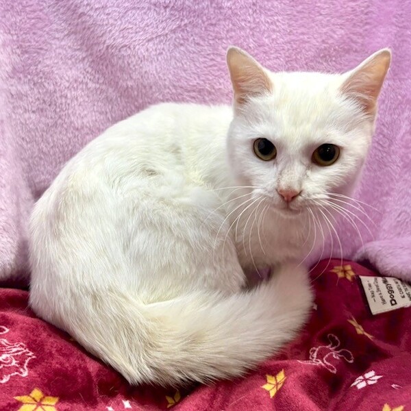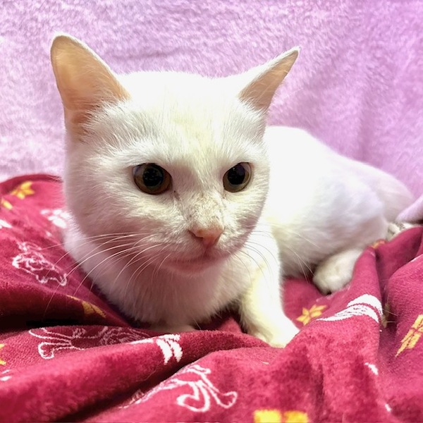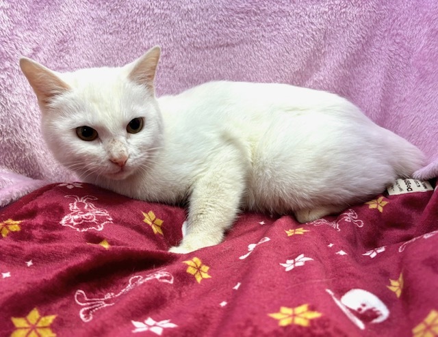| 特徴(性格など) | 【仮名】おもちちゃん 【性格】真っ白なおもちちゃん☆ ただいま絶賛人馴れ修行中! ナデナデが嫌じゃないカモ⁈って思ってきたトコロです♪ おもちちゃんのペースで向き合ってくれる里親様募集中です! 鏡餅のようなオチリはアナタだけのもの♡ ※1ピキ譲渡可 |
