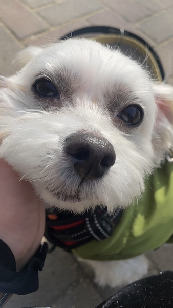 | 特徴(性格など) | 名前:しおんしおん 犬種:マルチーズ 年齢:8歳(元の飼い主申告) 体重:5.8kg(軽くダイエット中) 性格:甘えん坊で人懐っこいです。 体調:特に不調などはなく、元気に過ごしています。 歯も白くてしっかり残っています。 トイレ:主に室内でします。おしっこ、うんち共にこまめに1日に何度かします。トイレシートの認識がありそこでしてくれますが、コルクマットもトイレシートと勘違いしてしてしまいます。 お留守番:できます。 散歩:充分に経験していたようで、落ち着いて散歩を楽しめます。犬の姿が見えると、30mくらい離れていても落ち度待って唸ったりします。 なるべく近くて接触しないように早めに回避するようにしています。 初対面でも次の瞬間には膝に前足をかけてつかまり立ちしているような人懐っこい子です。ただし、苦手な相手に対しては唸ったり吠えたりします。 預かり宅では、猫とお父さんに慣れるまでに時間がかかりましたが、時間と共に大丈夫になっていきます。 散歩でも、人によってはジッと見たり唸ったりします。手を伸ばされると歯を当てることもあるので注意が必要です。 音に敏感で、吠えて警戒します。 苦手な音や相手に対しては、自分の尻尾を興奮してぐるぐる追いかけて高速で回ります。その時に、宥めようと手を伸ばしたりすると我を失っていて噛み付いてくることがあります。 食欲旺盛で何でも喜んで食べてくれます。 飼い主さんが亡くなられて保護されたとのこと。大事にされて過ごしてきたのだろうなということが感じられます。 悲しい思いをしたと思います。また大事に可愛がってくださるご家族様と出会えることを祈っています。 |