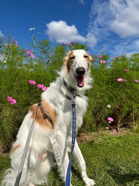 | 特徴(性格など) | 名前:スプリング(男の子) 犬種:ボルゾイ 年齢:2歳(2023年6月28日生まれ) 体重:30kg 性格:喜怒哀楽がはっきりしていて自分のペースがある子です。甘えたい時は全身でべったり甘えてきますが、嫌なことは嫌!と主張します。 体調:過去に両前足骨折の経験があり、プレートが入っています。 トイレ:室内室外どちらでもできます。室内だと120cm2くらいの広さにトイレシートを広げています。 留守番:できますが、時間が長いとカーテンや家具の破壊癖があります。 散歩:普段は静かに隣を歩いてくれますが、他の犬や猫への反応が強く立ち上がって飛び跳ねながら吠えます。トレーナーさんにきていただいてトレーニング中です。 気高く美しい子です。人が大好きですごく甘えん坊さんなのですが、人の顔色を伺ったりはせず、我が強い子です。 わんこと暮らすのが初めての方には難しい子かと思います。 スプリング自身は、走りたがりますが、走り方が下手なのと走ると骨折した箇所に負担がかかって痛いのか動けなくなるので、走らせないようにしています。 楽しいと一気に興奮して飛び跳ねるので、相手のワンコの反応次第でその興奮が攻撃に変わる可能性も充分にあり得ると思いますので、他のわんこと一緒にフリーでのお留守番はお勧めしません。 他のワンコとは人の目の届く範囲で落ち着いた時に一緒に過ごしたりお散歩に行ったりすることはできます。 |