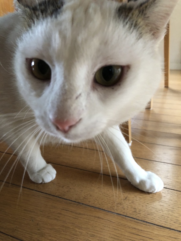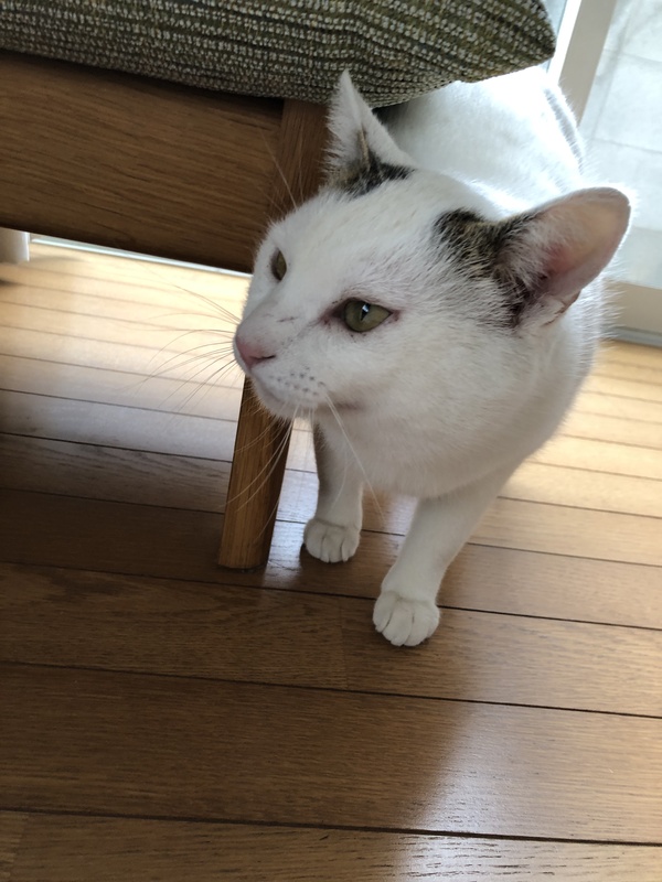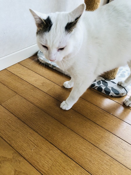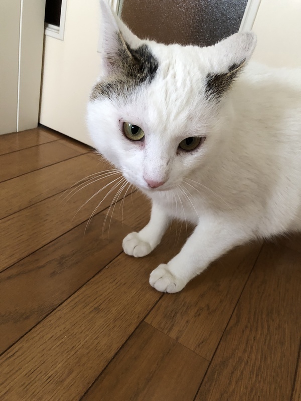 | 特徴(性格など) | 白猫で耳にキジトラ模様があり、 尻尾もキジトラ模様です。 かぎしっぽ 体格が良く6Kgあります とても優しく甘えん坊で、膝に乗ったり 抱っこも好きです。 怖がりなところもあります。 |