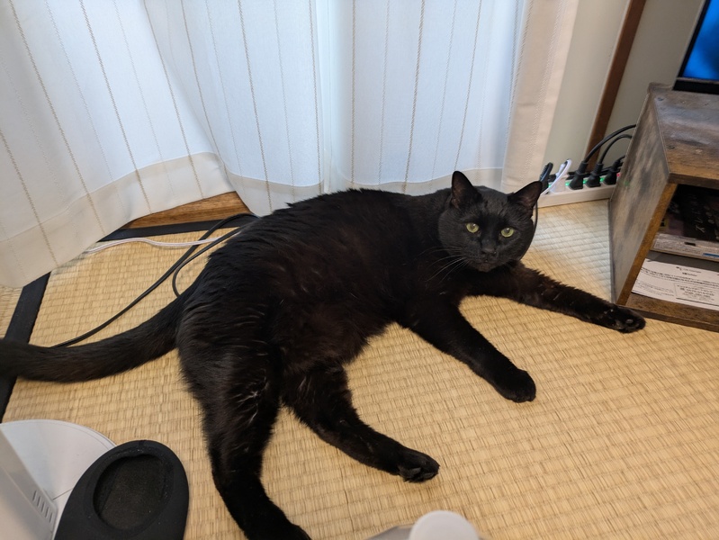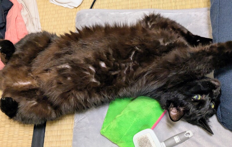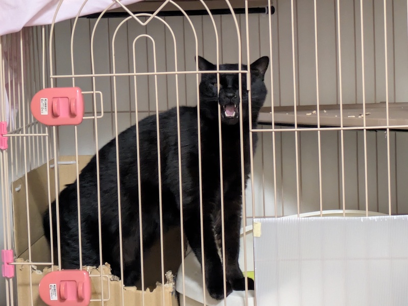 | 特徴(性格など) | 10歳黒猫 人間大好き 猫、子ども嫌いです。 慣れたら爪切りもさせてくれるし、夜寝る時にケージで寝てほしい方は捕まえて簡単にケージに入ってくれます。 懐いたら自分から膝に乗って甘えてきます。 猫が好きでは無いので1匹で室内飼い出来る方にお願いしたいです。 とても賢い子でドアや引き戸開けます。 ご飯はカリカリが大好きでウェットフードはあまり好みませんが、チュールは好きです。 一式お渡ししますので猫を始めて飼われる方、一人暮らしの方向けです。 体重が7,2キロと大きめですが抱き心地はモフモフです。 |