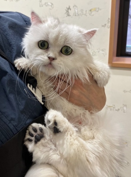 | 特徴(性格など) | 猫種 チンチラ 性別 メス 年齢 推定6歳くらい 体重 2.5キロ 絡まりやすい毛質なので、お手入れに時間をかけられる方へお譲りしたいと考えております。 犬歯が片方ありませんが、問題なくご飯も食べられています。 穏やかでマイペースな性格です。 |