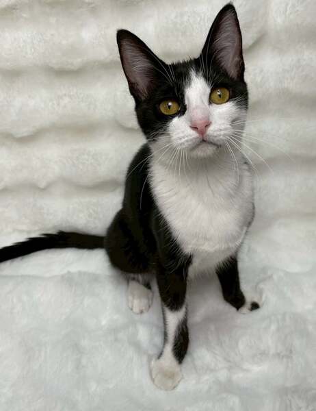4/12譲渡会出場にゃんず 黒白子猫ハチワレ♀@約5ヶ月半(仮名)アリアナちゃん