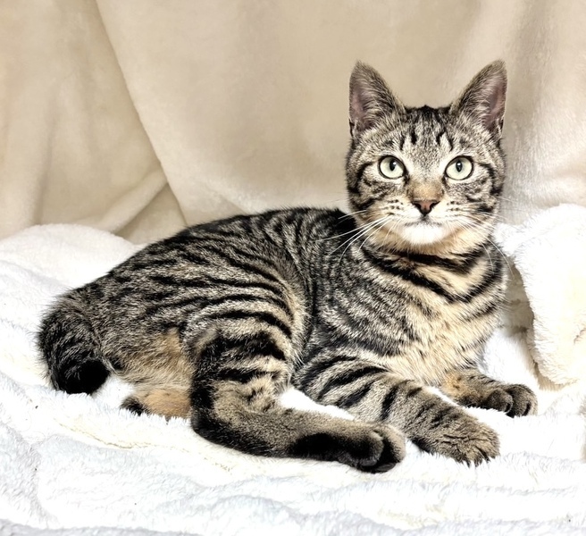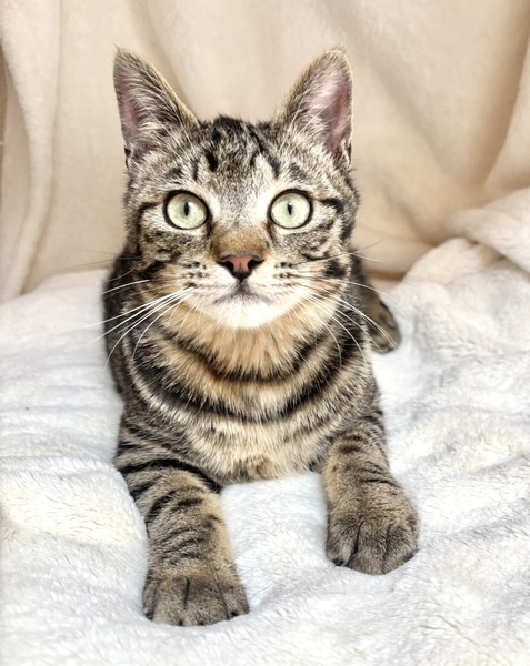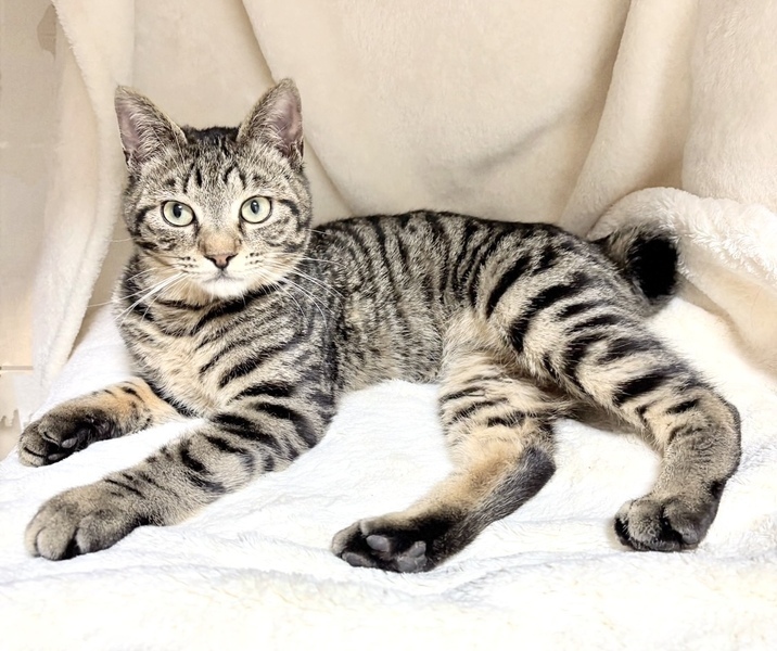 | 特徴(性格など) | 【仮名】リオンくん 【性格】わんぱく盛りの甘えん坊王子、リオンくん☆ 自慢はクッキリと入ったシマシマ模様! 濃淡がはっきりしたオシャレな毛並みと可愛いお顔に意志の強そうな綺麗に澄んだ瞳がチャームポイント♡ ちょっと短めでキュートな「幸せを呼ぶカギしっぽ」もステキでしょ⁈ 遊ぶ時はキジトラ全開ですが性格はデレデレの超甘えん坊! 実はひとときも離れたくない甘えん坊の寂しがり屋さんデス♪ ※1ピキ譲渡可 |