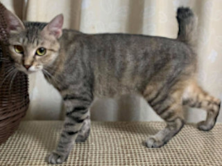 | 特徴(性格など) | TNR現場より保護されました。 きじとらの女の仔。尻尾は短めのピコピコ仕様です。 しまちゃんは臨月の時に、縁あってまたたび家にやってきました。 間もなくして4頭のベビーを出産。 しまちゃんの甲斐甲斐しいお世話でスクスクと育った仔猫たちは、 それぞれ2頭ずつ良縁に恵まれて、里親さんのもとで幸せにしていただいています。 しまちゃんは母性愛が強く子煩悩で、自分のことはいつだって後回しでした。 我が身を削り過ぎて、いっときは痩せてしまったのですが、今は自分のことを考えられるようになったようです。 食欲も旺盛で健康状態も良好です。 今度はしまちゃんが幸せになる番です! ビビリなところがまだありますが甘えん坊です。 お家の仔になったら、甘え度はどんどんアップしていくと思われます。 たくさん甘えさせていただけます方に。 特定の仔とベッタリとかはないのですが、他猫にも友好的で、争いを好みません。 先住猫さんの居るお家でも、しまちゃんは大丈夫でしょう。 むしろ喜んじゃうかもしれません♪ 愛らしいしまちゃんに、ぜひ会いに来てください。 白血病でも健康管理をすれば一緒に暮らすことが可能です。 猫白血病についてはコチラをご覧ください。 【医療処置情報】 これから実施のも含まれます *健康チェック *3種混合ワクチン接種 *ウイルス検査(FIVは陰性、FeLVは陽性) *検便 *駆虫薬投与(レボリューション、ドロンタール) *マイクロチップ装着 *不妊・去勢手術 |