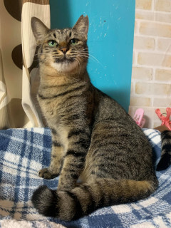| 特徴(性格など) | TNR現場より保護されました。 きじとらの女の仔。 人見知り場所見知りあります。 またたび家に入室しました時も、しばらくはかくれんぼが続きましたが、 食べ物に釣られ、愛に釣られて、徐々に出現率が上がってきます。 安心がわかると甘えん坊に大変身〜! フクのその変化も、愛おしく思っていただけます方に。 保護されるまでは、お外で暮らしていました。 温和で争いを好みません。 他猫と上手く共生できます。 誰かとベッタリではなく、みんなと程よく付き合えます。 尻尾は長く太くて立派です。 口角がキュッ上がっています。 いつも笑顔のフクちゃんです。 愛らしいフクに会いに来てくださいね。 【猫のFIVキャリアとは?】 猫属のみで人間にはうつりません。 空気感染はしません。 ノンキャリアの仔と同じ平均寿命とも言われています。 一生発症せずに、天寿を全うする猫もいます。 少しの気遣いで幸せに暮らすことができます。 詳しくは以下のリンクからご覧ください。 http://www.catvirus.jp/home/fiv/index.html 【医療処置情報】 これから実施のも含まれます *健康チェック *3種混合ワクチン接種 *ウイルス検査(FIV(+)FeLV(ー)) *検便 *駆虫薬投与(レボリューション、ドロンタール) *マイクロチップ装着 *不妊・去勢手術 |