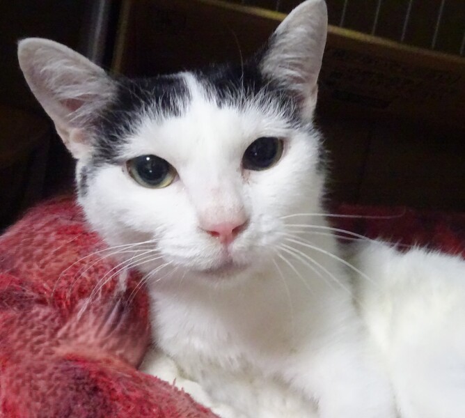 | 特徴(性格など) | 仮名: 千香ちゃん、メス 毛色: 殆ど白の白黒、尻尾長く黒。 性格: 保護時はビビりのため、病院でも力を振り絞って抵抗したので、一旦手術保留となりました。 今は、家ではビビりの感じではなく、すんなり抱っこ出来ますが、カメラを向けたり、じゃらしが上に来たりすると目をつぶってしまいますので、やはり怖がりです。 譲渡会などでは大勢の人を怖がると思います。 猫飼い経験者で怖がりの子を知っていらっしゃる方のほうが良いかもしれませんが、家では落ち着いています。 お届けは千葉県内で千葉市幕張から車で1時間位を希望しています。 検便済 駆虫済 ワクチン済 避妊手術済 猫エイズ、白血病ウィルス検査は陰性です |