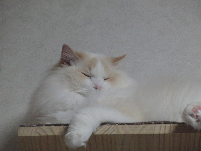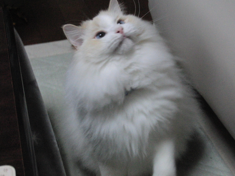 | 特徴(性格など) | 薄茶色のラグドール、ふさふさな毛が特徴 性格はおとなしく臆病だが人になれるとすり寄ってくる ブラッシングが大好き、独たまにかわいい鳴き声で呼びかけてきます |