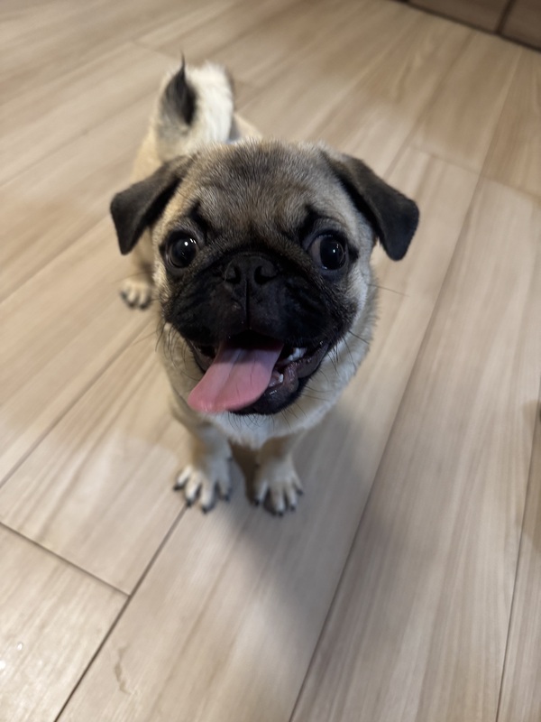 | 特徴(性格など) | フォーン色の元気なパグです。舌がぺろっと出てるのが特徴で1人遊びも上手にでき、トイレも成功率高めです | ||