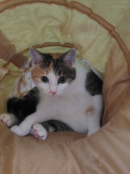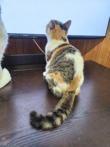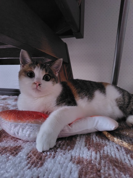 | 特徴(性格など) | 凄く元気なしま三毛猫です!先住猫にも積極的に絡むので先住猫がタジタジです。猫には物怖じしない性格ですが、人慣れはしていません。保護してまだ3ヶ月少しなので慣れていませんが、気が向くと足元にスリスリしますが触ろうとしたり、接近すると逃げます。人慣れにはちょっと時間がかかりそうです。 | ||