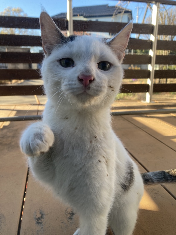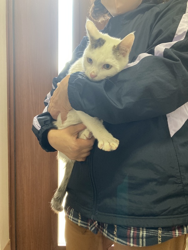 | 特徴(性格など) | 白サバでとても人懐こい子です。庭や畑を元気に飛び回っています。我々が庭に出るとついてきます。かつて飼われていたらしく人に慣れていて、撫でてと言わんばかりにごろっと横になってお腹を見せます。獣医師によると一歳くらいだろうということです。去勢手術は実施しました。予防あるいは念のためレボリューション+を襟首に滴下しました。寄生虫や真菌の検査をしましたが両方ともいませんでした。 | ||