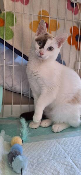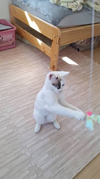 | 特徴(性格など) | お顔の柄が個性的で、ブルーの目がとても綺麗です。 お膝の上に乗り、喉をゴロゴロ鳴らして甘えてくれます。 おもちゃで遊ぶのも好きで、元気に過ごしています。 |