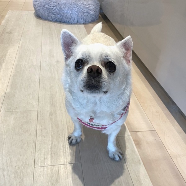 | 特徴(性格など) | 【はじめに】 ◉預かりブログ・HP・譲渡条件を【必ず】熟読の上、アグリドッグレスキュの専用フォームからご応募お願いいたします アグリドッグレスキューHP https://aguri.nomaki.jp/ 譲渡条件 http://aguri.nomaki.jp/z.html ★【アグリドックレスキュー応募アンケートフォーム】★ http://my.formman.com/form/pc/HSiHA19xGo1sxlwu/ 預かりブログ『あんこがしみる』 https://ameblo.jp/kotoratoann/ ピグレットちゃん(仮名) ・スムースチワワの女の子 ・年齢 10歳(2016年3月生) ・体重 6.2キロ(適正体重5キロぐらい) ・血液検査済 ・フィラリア(−) ・ノミダニ駆除済 ・混合ワクチン接種済 ・狂犬病予防接種済 ・避妊手術済 高齢の飼い主が入院となり引き取りをした、ピグレットちゃんです。 ◼️性格 飼い主と一緒にいる事が大好きで、おっとりしていて、少しシャイな感じの女の子です。 心を許した人にとっても甘えん坊で、何か訴えたいときなどは手でちょいちょいとアピールしてきます。 ◼️散歩 1日2回20分づつお散歩をしています。 自分で気に入った道があり、あまり匂いなどは嗅がず、意外と力強くひたすら歩きます。 車など大きい音や、人が多い道などは苦手で引き返そうとするので、静かな道を選んで散歩してあげるといいと思います。 ◼️お留守番 お散歩に行った後は、静かに寝てお留守番をしてくれています。 暇になると、前足を舐めるなどしてしまう傾向があるので散歩は必須だと感じます。 ◾️吠え 物静かな子で、余程の事がなければ吠えたりはしません。 ◼️健康面 運動をせず脂質の多いフードを食べていたようで、引き出し時は6.8キロとかなり太っていました。 血液検査やエコーでも、そういったところの数値が高くなっています。 薬の処方には至りませんでしたが、これからの健康のためにも現在ダイエット中です。 ◼️お手入れ ブラッシングや撫でてもらう事が大好きで、シャンプーなども問題なく行う事が出来る子です。 歯磨きは少し苦手そうです。 ◼️トイレ 概ねトイレシートに行きトイレをしてくれています。 絨毯などはシートと勘違えやすいようで何度か間違えたことがありましたので、絨毯などは撤去してもらえると安心かと思います。 引き出し直後のトイレは室内派でしたが、最近は散歩中にもしてくれるようになりました。 今迄の食生活の影響などがあるのか、ウンチを食糞してしまう事がありますので、排便後は直ぐに片してもらえたらと思います。 ◼️ごはん 現在はドライフードのみで食べてくれますが、 食べたことのない物には興味を示さない傾向があったり、引き出し直後は精神的に食べられない時期などがありました。 ◼️対犬 基本的に興味がなく、近寄ってこられると逃げてしまいます。 先住犬がいる場合は、同じようなタイプ、同じようなペースの子となら一緒に過ごせると思います。 とっても可愛いピグレットちゃん! これからの犬生、寂しい思いをする事のないように、大切にして下さる方からのご応募をお待ちしています。 |