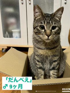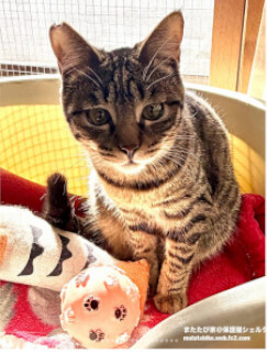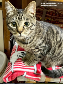 | 特徴(性格など) | 仮名「だんべえ」といいます。 キジとらの男の仔です。 「だんべえ」は群馬県からきました。 お外の仔をおうちに入れているうちにどんどん増えてしまい、心配した方が「所沢さくらねこ診療所」(一般社団法人またたび家運営)を紹介してくださり、全頭の避妊去勢手術を条件として、仔猫たちをシェルターに引き取ることになりました。 他にもきょうだい達がいますが、一番乗りで「だんべえ」がシェルターに入室しました。 尻尾はまっすぐ(性格もまっすぐ(#^.^#)) ドライもウェットもごはん大好き!美味しいもの大好き!なグルメ君です。 おっとりとした性格ですが、日ごろの行動にも表れているようです。 物静かなイメージがあり普段はあまりおしゃべりはしない方ですが、ボーイソプラノの可愛い声を聞かせてくれます。 レアな鳴き声を聞いてみたいですね。 人も猫も大好きな甘え上手な仔でもあります。 元々の性格がそうなのかもしれませんが、たくさんの兄弟姉妹たちから離れて先にシェルターに来たせいか、ふと気が付くと隣でぴとっとくっついて丸くなって寝ています。 密着型甘えん坊のようです。 抱っこもお膝も大好き! ジャンピング肩乗りだってしちゃいます♪ 猫にもくっついて甘える「だんべえ」なので、先住ちゃんのいるおうちでは猫団子になる姿が見られそうです。 そして・・・夜になったらおふとんやベッドで添い寝をしてくれるかもしれませんよ。 仲良し猫と一緒に卒業もうれしいかも。 こんな甘え上手な「だんべえ」に甘えられたい!と思ったら、ぜひ会いにいらしてくださいね。 きっと一目見ただけで、ましてやくっつかれたら、その愛らしさにくぎ付けになってしまうでしょう(*´з`) ☆だんべえより 「ぼくは甘えるのが上手だから「たらし系男子」なんて言われてるみたいだけど、僕が甘えるとみんなが嬉しそうな顔をするから、僕も嬉しくなってくっついてしまうんだ。 嬉しいって幸せってことでしょ? ぼくもっと幸せになれるかな~。きょうだいたちもみんなみんな幸せになってほしいよ」 【医療処置情報】これから実施のも含まれます *健康チェック *3種混合ワクチン接種 *ウイルス検査実施(FIv.FelV共に陰性) *検便実施 *駆虫薬投与 *マイクロチップ装着 *不妊・去勢手術 |