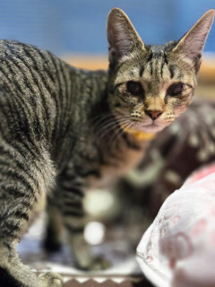 | 特徴(性格など) | 仮名を「にゃんみ」と言います。 キジトラの女の仔。 センターから四兄妹で来ました。 保護当初はかなりひどい「オメメイタイイタイ」状態で、 切開術も三回しました。 たくさんお薬も使い、出来る限りの治療も頑張りましたが、 よく見ないとわからないくらいですが薄く白濁が残りました。 視力は問題なくしっかりありますので、日常生活には全く支障はありません。 鼻も猫風邪の影響で鼻炎を起こしやすいですが、 そちらも日常生活に問題ありません。 食欲は旺盛で好き嫌い無くなんでもよく食べてくれます。 すくすく成長してすっかり「おっきな仔猫」になりました♪ オメメの治療のこともあり、生後3か月頃からはシェルターから 預かり宅に移動して現在も預かり宅にて毎日元気に過ごしています。 体調を崩すこともなくとてもお世話が楽な仔です。 性格は温厚で人が大好きで、常に人の傍にいます。 布団の中にも入ってきて一緒に寝てくれます。 抱っこは肩乗りが好きで「抱っこ~」と言ってくるかわいい仔です。 この仔と暮らしたら毎日笑顔が絶えないステキな暮らしが待ってますよ♪ ⭐︎にゃんみより わたしの名前(仮)はにゃんみ おんなのこらしいかわいいお名前でしょ? わたしは最初控え目な仔だと思われてたみたい え?ホントはどうかって? 預かりママはわたしのことを「大和撫子」だっていうわ よくわからないけどきっとそれおいしいのヤツなのかもって思ってるの♪ お見合い場所は所沢市になります。 愛らしいにゃるとに会いにきてくださいね。 【初期医療情報】 これから実施のも含まれます *健康チェック *3種混合ワクチン接種 *ウイルス検査(FIV. FeLV共に陰性) *検便 *駆虫薬投与(レボリューション、ドロンタール) *マイクロチップ装着 *不妊・去勢手術 |