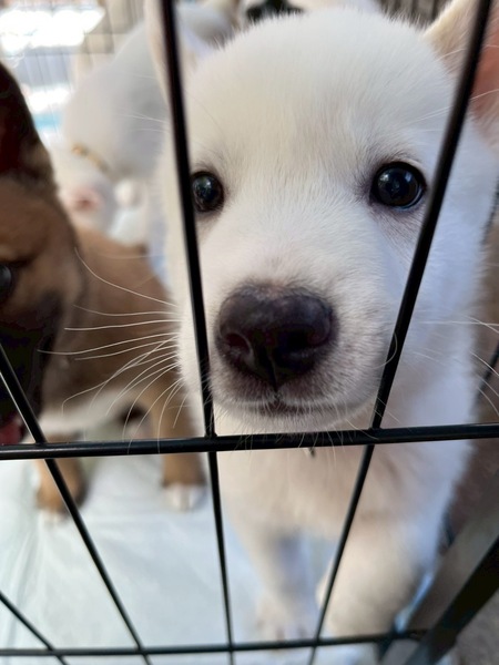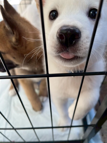 | 特徴(性格など) | 香川県の河川敷で保護された6兄弟姉妹、白い男の子です。 元気いっぱい、兄弟と預り宅の先輩犬とよく遊んでいます。 人馴れしています。 成犬時の予想体重はまだわかりませんが、15キロ前後 【初期医療予定】 血液検査済 ノミダニ駆虫済 お腹の駆虫薬1回目(4/1済) お腹の駆虫2回目(4月半ば予定) お腹の駆虫3回目(5月初め予定) 混合ワクチン1回目(3/30済) 混合ワクチン2回目(4月末予定) 混合ワクチン3回目(5月末予定) 狂犬病ワクチン5月半ば予定 お散歩練習開始は5月半ば予定 避妊去勢手術 4、5ヶ月~1歳までに実施予定 |