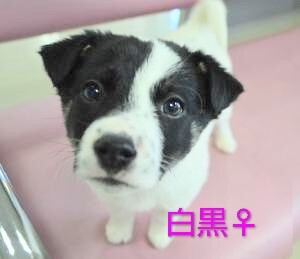 | 特徴(性格など) | ミルクボランティアやセンター職員さんがお世話していたため、人懐こい子が多いです およそ小さい子は7.8kg程〜10kg、大きな子は15kg程に成長すると予想します 写真をご覧いただき、気になる子をお知らせください A 白黒♀ B 黒斑♀ C 黒♂ D トライ♂ |