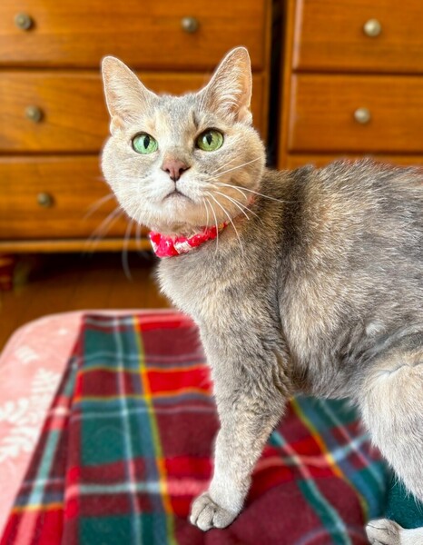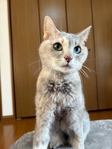 | 特徴(性格など) | 一時は命の危機があった彼女ですが 動物病院への入院、鼻からカテーテルを通しての栄養食の給餌。 正直一度は回復が難しいと脳裏をよぎりましたが 獣医師の懸命な看護と預かりさんご家族の献身で、 彼女はV字回復致しました。 胃腸が栄養を取ることを思い出してからは ご飯をもりもり食べ、ふくふくねこさんになってきました。 ゆったりまったりとしたのんびり猫さんです。 お膝抱っこと、顔ぐりぐり撫でが大好きで 肉球を優しく包んであげると嬉しそうにする子 (あたたかいんだろな) 高い位置の抱っこは少し苦手で 目が合うと愛らしいダミ声でよくおしゃべりしては 皆んなをメロメロにします。 ぴっとりくっついていられれば満足で 寄り添ったままよく立ち寝をししまいます。 ハイシニアののんびり猫さんですので ドタバタしたりイタズラしたりはありませんが 猫じゃらしやポンポンで遊ぶのは大好き。 引き出し当時は2.18kgでしたが、 2ヶ月経過した現在は3kgまで増量しています。 10歳以上…もしかしたらもっとハイシニアかもしれませんが どの子も、私たちも、未来の時間は分からない。 今この時を見つめて、彼女との暮らしを 笑って楽しんでくれる そんなずっとの家族をお待ちしてます。 |