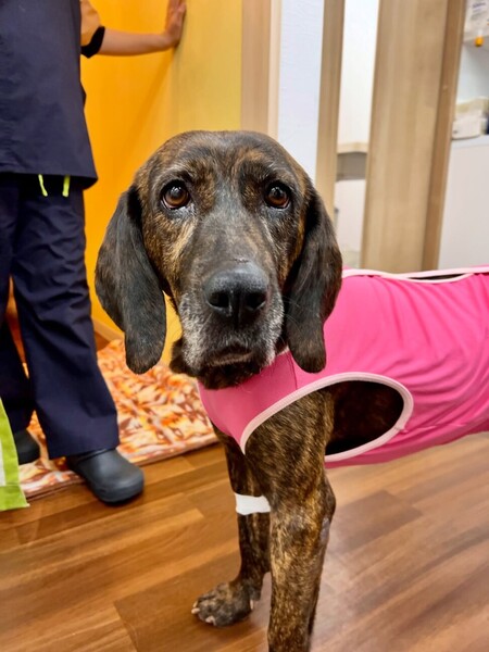 | 里親募集する理由 | 群馬県動物愛護センターより引き取りました。 群馬県にはいつも猟犬が遺棄されるスポットがいくつかあります。 イノシシ猟が行われているその地域では プロットハウンドが定期的に保護されるのです。 彼女がセンターに収容される10日前にも同じような場所で オスのプロットハウンドが保護されていました。 「ハンターが大事な猟犬を遺棄するなんてありえない」という人も居ますが 本当に犬を失いたくないハンターは、GPSも付けるし居なくなったら警察や保健所に即届け出ます。 そうやって保健所から帰宅する猟犬ももちろん居ます。 でも彼女は明らかに捨てられていた。 首輪すらしていない。 迎えにすら来ない。 「ものすごく人懐こい子ですよ」と、センター職員が言った通り 立派な尻尾をブンブン振り回して私と対面してくれました。 |