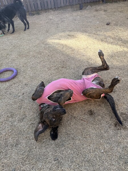 | 特徴(性格など) | センターから出所したときは嬉しすぎて「ブヒョブヒョ」と変な声を漏らしていました。 外だ!さあ帰ろう!! と迷いもなく颯爽と車に積んだバリケンに飛び乗ったのです。 バリケンの中では慣れたもの、全く動かず騒がず。 プロットハウンドの吠え声の凄まじさは覚悟していましたが 彼女の声は少しダミ声。 ありがたいことにあまり通らない声でした。 確かに吠えますが、お散歩の前・ご飯の前の大興奮で声が出てしまうようです。 お散歩から帰ってご飯を食べたら朝までケージの中で静かに爆睡しております。 他の犬達との相性はどうかなと心配しましたが ちょっとドジっ子でちょっとお間抜けな彼女は ワンプロの群れに入れず、ワンテンポ遅くはしゃぐので、とにかく遊び方が下手。 ただ、遊び上手の先住犬がしっかりと相手をしてあげると上手に遊びます。 しかし、犬よりも圧倒的に人が好き。とにかく人間を全力で愛したい。 そんな犬です。 お散歩前は嬉しすぎてパワフルにはしゃぐので さぞお散歩が大変かと身構えていましたが いざ散歩に出発してしまうと、引っ張りも強くなく楽しく快活なお散歩ができるではないですか! 非常に拍子抜けをさせられました。 女性でも楽々散歩可能です。 トイレは室内で失敗せず。 お庭に出した途端に済ませてくれます。 初めての場所や動物病院でも一切物怖じはせず 初対面の人にも、いきなり甘えん坊モードが発動できる超社交的な性格。 ただ、猟犬あるあるで フードやおもちゃへの執着が強く、一度口に咥えたものを取り上げようとすると怒ります。 誤飲事故などが怖いので届くところにものを置きっぱなしにしない等 安全対策は必要です。 また、本人悪気はないながらも嬉しくっての飛びつきがあるため 10才以下のお子様の居ないご家庭が良いかと思います。 そこさえ気をつければ素晴らしい家族の一員になってくれると思います。 |