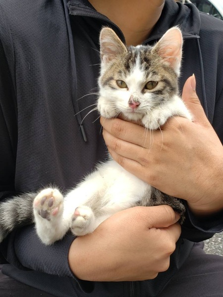 | 里親募集する理由 | 突然近所に現れて、私を見るなりニャーニャー鳴いて走ってきました!ビックリするほど懐っこいので捨てられたのではないかと思います。緊急で保護する事になったのですが家には3匹の老猫が居るので、ずっと保護する事ができません。この子を家族として迎えてくれる方を探しています。質問など遠慮なく連絡下さい!よろしくお願いします! | ||