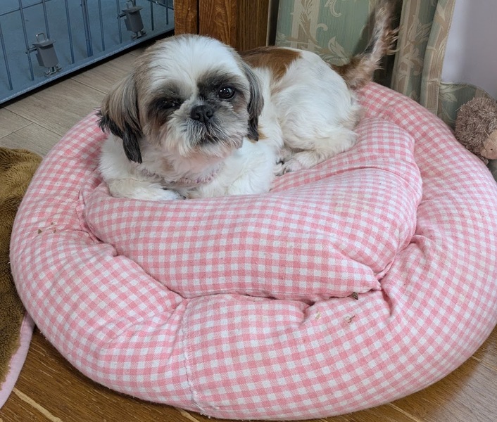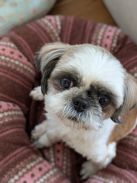 | 特徴(性格など) | 名前(仮名) つくし 犬種 シーズー 性別 メス 年齢 推定3歳 体重 4.82kg 健康 5種混合ワクチン接種済 避妊手術済 血液検査済(異常なし) 歯科処置済 心雑音無し フィラリア陰性 性格 人にも犬にもフレンドリーに接することができます。 攻撃性は全くありません。 元気で活発ですが、落ち着きはあります。 食事 食欲旺盛。カリカリだけでもよく食べます。 お手入れ シャンプー・トリミング等お手入れ全般おとなしくできます。 トイレ 室内トイレ練習中 散歩中に排泄を済ませると室内ではほとんどしないですが、散歩に行かれない時などはオムツも利用しています。オムツは嫌がりません。 お散歩 たいへん上手に出来ます。 乗り物 車に大人しく乗れます。 吠え 全く吠えないわけではありませんが、少ない方だと思います。環境によっては変わるかもしれません。 留守番 フリーでもサークルでも出来ます。 |