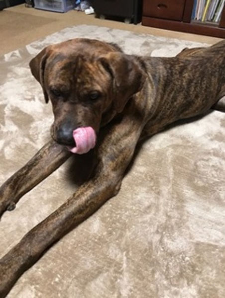 | 特徴(性格など) | 英国マスティフ系ミックス コールネーム:モモ 毛色:ブリンドル 健康:不妊済 血液検査5356円及び不妊手術30240円寒さのため下痢治療費13608円 計49204円のご負担をお願いします。 混合ワクチン済み フィラリア(−) 体重 :現在38.5㎏ 性格:最初は、シャイなところがありますが、馴染めば甘える可愛い性格です。馴染みは早いです。 飼育方法:室内飼育及び犬舎飼育可 一頭飼育希望 超大型犬経験者を希望します。 |