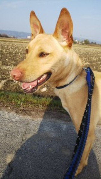 | 特徴(性格など) | 20キログラムのかわいいミックスの男の子です。顔は恐持てですが、性格はいいこで人間が大好きです。優しい男の子。他の犬とケンカをすることはありません。散歩のときは引っ張るので、体力ある方にもらってもらいたいです。昼間は外も大好きです。夜は雨風のしのげる、屋内で飼っていただけたらと思います。ぜひ、このこに会いにきてください。 |