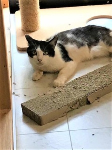 | 特徴(性格など) | 虹の橋を渡りました。応援有難うございました。猫さんが皆幸せになります様に。 ちょたろう 仮名はレタス。穏やかですし攻撃もしませんが、とても怖がりさんです。ケージ内では撫で放題ですが、ケージから出るとまだ怯えています。 お外での生活が長かった為、人馴れに時間がかかると思います。ゆっくり見守って下さる方を希望します。 保護時は栄養状態が非常に悪く皮膚や毛質がボロボロでした。三毛の様に見えますが状態良い現在は白黒に生え変わってきています。 目が大きくて、可愛らしいお顔。尻尾がとても長いです。猫と静かに暮らしたいって方にお勧めな猫さんです。 エイズ陽性です。発症はしていません。至って健康です。トイレ失敗なし。 ◎白血病は陰性。 ◎ワクチン二回接種済。 ◎駆虫済、検便異常なし。 ◎ノミ、ダニ駆除済。 ◎去勢手術済。 |