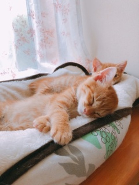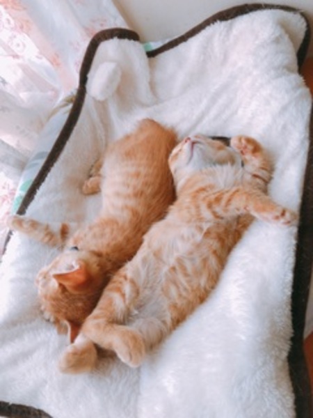 | 里親募集する理由 | 野良ちゃんの生んだ子達です。近隣の人達からの連絡で子猫は保護し お母さん猫は手術をしました。キジネコは素敵な里親さんに出会うことができましたので、チャトラ二匹兄弟の里親さんを探しています。 我が家には他にも保護猫が多数おりますため、この子達の里親になってくださる方を探しています。のみ取り、駆虫済 です。出来れば2匹で迎えてくださる方を希望しますが、1匹でも検討させていただきます。 宜しくお願いいたします。 |