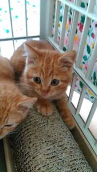 | 特徴(性格など) | 食欲旺盛で元気です。 ウィルス検査済、エイズ:陰性、白血病:陰性、ノミ駆除済。 茶色の仔猫兄弟、チップ&デール、おめめぱっちりで写真より可愛いです。 少しだけ色が濃い方がデール、薄い方がチップです、どちらも1キロ未満。 |