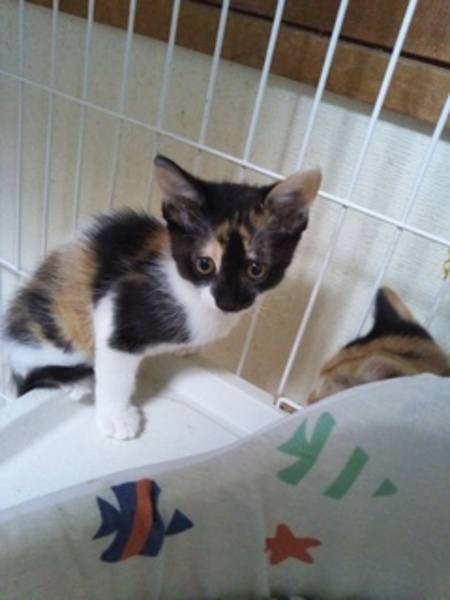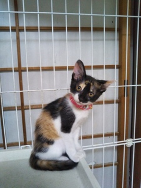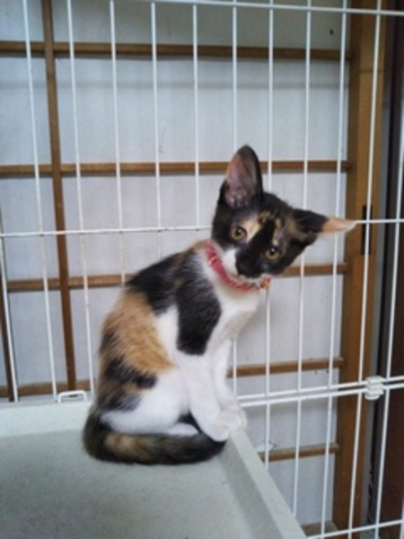 | 特徴(性格など) | 最近珍しい和風の三毛ちゃんです。テレビのアンケートで「飼いたい猫」1位が三毛だそうです。 すごくフレンドリーで、元気に走り回っています。 エイズ白血病検査陰性、ノミダニ駆除・フィラリア予防のためレボリューション投与 検便済 トイレしつけ済み 近々ワクチン接種予定 |