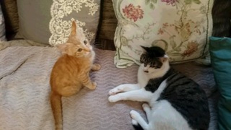 | 特徴(性格など) | 名前・性別:「トラ吉」♂ 毛色:茶とら尾長 性格:かなりの甘えんぼ、人が大好きで膝には乗るわ、手や顔をペロペロするわ・・・・・ でも、一人で遊べるし、先住のお姉ちゃん猫とも、上手に関わり遊べる賢い子です。 トイレは完璧、夜だけケージに入れていますが(新しいお家に行った時、先住猫がいる等の関係で最初、ケージで様子を見て頂く可能性を考えて馴らしています)おとなしく一人で過ごせます。 猫初心者さんでも、先住猫さんがいるご家庭でも、お勧めの子猫です。 健康状態:第1回ワクチン済み、エイズ・白血病検査(−) 便検査済み、ノミダニ駆虫済み、健康状態良好。 |
