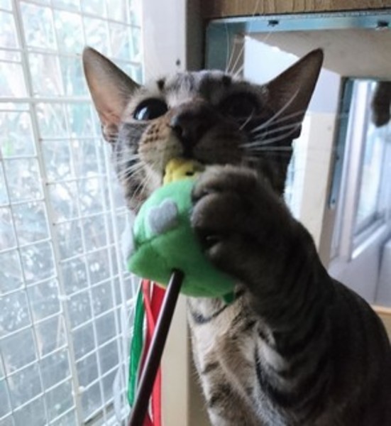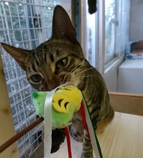 | 特徴(性格など) | まだまだビビりさんの「しお」くん♡ 物静かで、頭、隠して、お尻ツンツンすると、?!の振り返り♪ ちょっぴりひょうきんな男のコです。 現在、ドライフードを置き餌として、栄養補給のため、缶詰パウチを一日2回与えています。 推定誕生日:2018/5月中旬 |